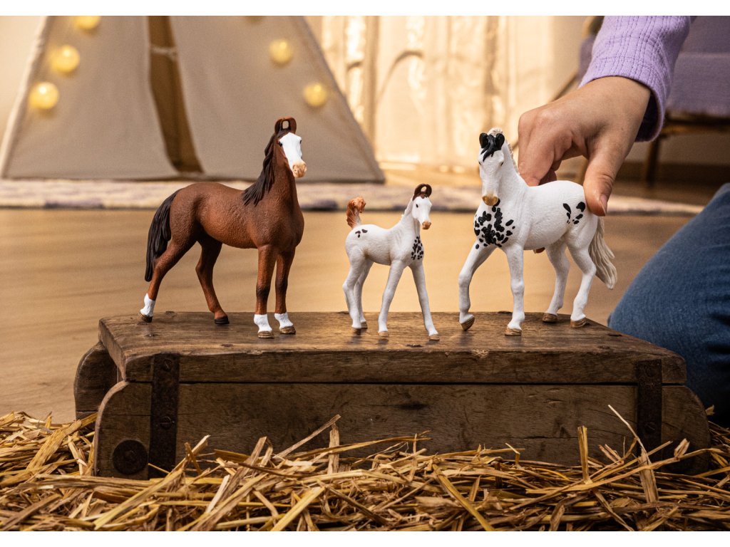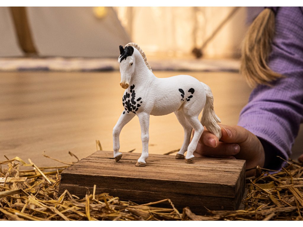 Krásný hřebec marwari ladně skloní svůj štíhlý krk a rozšíří měkké nozdry. Nastraží své černé srpovité uši a naslouchá: Slyší snad tam vzadu zakvílení? Možná ho volá klisna marwari. Nejspíš tam hned vyrazí. Blízko je taky malé hříbě marwari. Když jsou všichni tři pohromadě, je rodinka kompletní. Perfektní! Hrdý hřebec marwari upoutá pozornost svou dvoubarevnou hřívou. Jeho srst je sněhově bílá, jen na hrudi a na boku má pár černých skvrn. Černá ofina mu padá do čela mezi černé zahnuté uši. Podobnost s jeho strakatým hříbětem marwari se nedá přehlédnout. Toto půvabné plemeno koní lze snadno odlišit od ostatních plemen podle uší, které jsou charakteristicky zahnuté dovnitř. Pozornost hřebec marwari rozhodně upoutá dvoubarevnou hřívou a pískovým vzorem na hrudi! Kůň marwari pochází z Indie a je jedním z nejstarších plemen koní na světě. Toto půvabné plemeno koní je naprosto nezaměnitelné. Tento výrobek Schleich® patří do tematického světa HORSE CLUB a je vhodný pro děti ve věku od 5 do 12 let. Rozměry figurky: 11,5 x 3,8 x 13,2 cm.Dodatočné parametre
