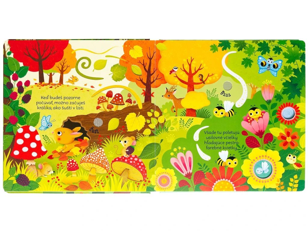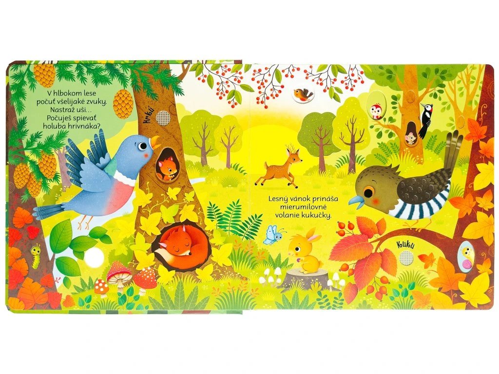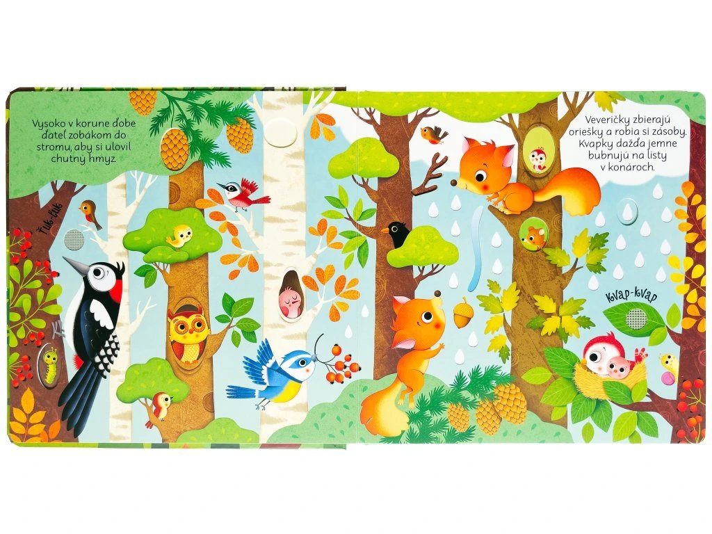 Zvuky lesa Roztomilé zvieratká a zvuky prírody v jednej knihe „Zvuky lesa“ je interaktívna zvuková kniha, ktorá priblíži deťom fascinujúci svet lesa. S roztomilými a hravými ilustráciami a autentickými zvukmi lesných zvierat sa deti zoznámia so zvieratami ako je jeleň, líška, zajac, ale aj so zvukmi lesa, ako sú šum stromov, škrípanie vetra či spev vtákov. Táto zvuková kniha ponúka detom zábavný spôsob, ako objavovať prírodu a zvieratá okolo nás, pričom rozvíja ich pozornosť a zmysly. Je ideálnym nástrojom na vzdelávanie a zábavu v jednej knihe, ktorá osloví každého malého milovníka prírody.Dodatočné parametre